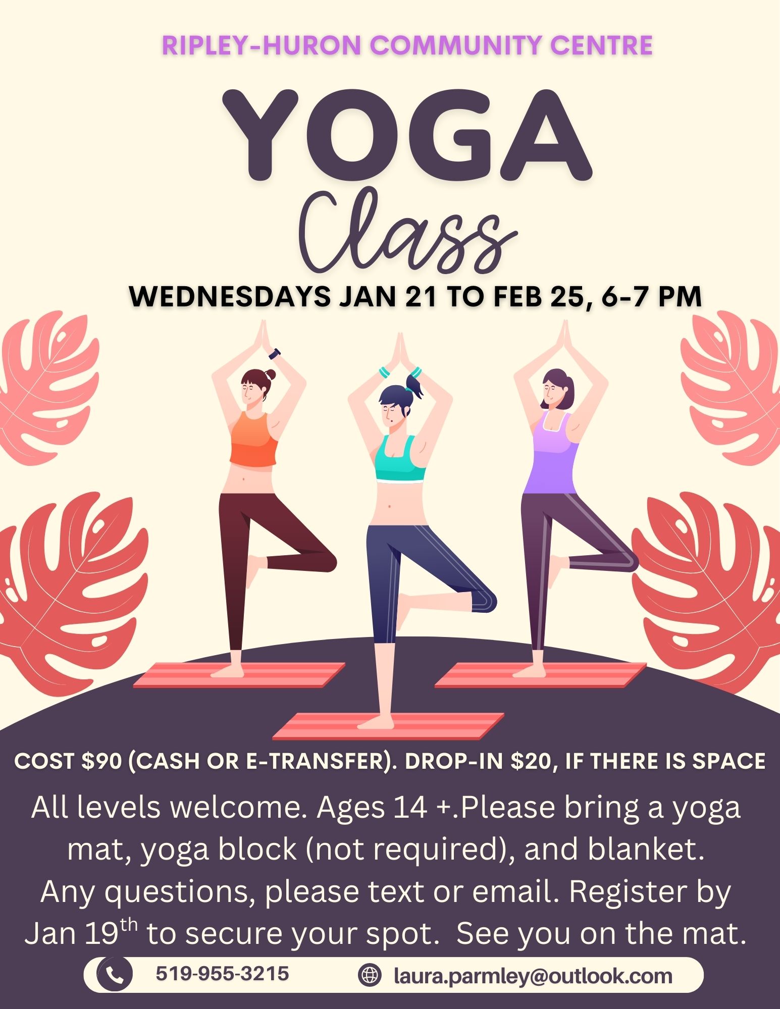 Join Laura for Wednesday evening yoga classes at the Ripley-Huron Community Centre!